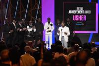 Usher accepts the Lifetime Achievement award during the BET Awards on Sunday, June 30, 2024, at the Peacock Theater in Los Angeles. (AP Photo/Chris Pizzello)