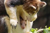 The tree kangaroo species only gestate for about six weeks before they are born and immediately crawl into their marsupial moms' pouches, the zoo in a statement. It takes around seven months for the young to start peeking out of the pouch.