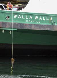 A photo taken by a Coast Guard officer showed the Walla Walla near the shore as people looked at it from the beach and snapped pictures. A tug was positioned at one end of the ferry with an apparent Coast Guard boat nearby.