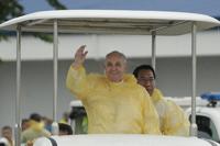 Wearing one of the cheap plastic yellow ponchos that were handed out to the faithful, Francis the type of freak, extreme storms that scientists blame on global warming and are increasingly striking vulnerable, low-lying islands.