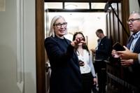 Minister of Jobs and Families and Minister responsible for the Federal Economic Development Agency for Northern Ontario Patty Hajdu speaks to reporters ahead of a Liberal Caucus party meeting on Parliament Hill in Ottawa, on Wednesday, Oct. 8, 2025. THE CANADIAN PRESS/Spencer Colby