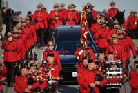Before the service, thousands of officers marched in unison in a procession led by an RCMP pipe band, a hearse and riderless horse.