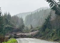 The results of a landslide that brought down power lines in Winter Harbour, B.C., on Vancouver Island are seen handout image provided by BC Hydro on Thursday, Oct. 23, 2025. THE CANADIAN PRESS/Handout — BC Hydro (mandatory credit)