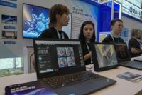 Visitors try out the AI chatbot Ernie Bot on the laptop computers at a booth promoting the AI chatbot during the Wave Summit in Beijing on Aug. 16, 2023. Chinese search engine and artificial intelligence firm Baidu on Thursday made its ChatGPT-equivalent language model available to the public, in a sign of a green light from Beijing which has in recent months taken steps to regulate the industry. (AP Photo/Andy Wong)