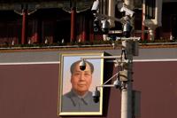 A portrait of late paramount leader Mao Zedong is seen behind security cameras near Tiananmen Gate in Beijing, Tuesday, Feb. 18, 2025. (AP Photo/Ng Han Guan)