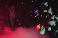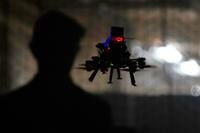 During a recent demonstration, a student used a remote control to launch the drone in a brightly lit room and then again after turning off all but a faintly glowing red light. As it approached a clear, Plexiglas wall, the drone repeatedly halted and backed away, even with the lights off and with fog and fake snow swirling through the air.