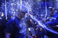 Toronto Blue Jays celebrate after winning the American League East Division title following MLB baseball action against the Tampa Bay Rays, in…