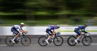 Athletes exchange the baton during the men's 4x100 meter relay at the World Athletics Relays, in Guangzhou in south China's Guangdong province on Sunday, May 11, 2025. (Chinatopix Via AP)