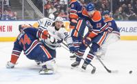 Michael Woods from Canada pushes towards the finish during the UCI Montreal Grand Prix Cycling race in Montreal, Sunday, September 15, 2024. THE CANADIAN PRESS/Graham Hughes