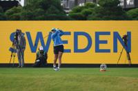 Maja Stark of Sweden watches her shot on the third hole during the pool B match against World team for the LPGA International Crown golf tournament at the New Korea Country Club in Goyang, South Korea, Saturday, Oct. 25, 2025. (AP Photo/Lee Jin-man)
