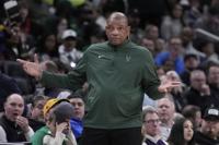 Milwaukee Bucks head coach Doc Rivers reacts during the second half of an NBA basketball game against the Los Angeles Lakers Thursday, March 13, 2025, in Milwaukee. (AP Photo/Morry Gash)