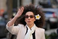 FILE - Masih Alinejad blows a kiss to supporters outside the federal courthouse after testifying at the trial of her would-be assassins in New York, March 18, 2025. (AP Photo/Seth Wenig, File)