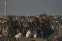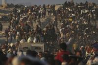 Palestinians by the thousands Sunday again trekked for the chance to grab a sack of flour or other food staples for their families.