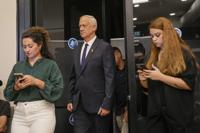 Benny Gantz, a centrist member of Israel's three-member War Cabinet arrive to announce his resignation in Ramat Gan, Israel, Sunday, June 9, 2024. Gantz Sunday's move does not immediately pose a threat to Prime Minister Benjamin Netanyahu, who still controls a majority coalition in parliament. (AP Photo/Ohad Zwigenberg)