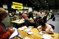 Counting gets under way after Friday's voting in the Irish presidential election at the RDS, Dublin, Ireland, Saturday, Oct. 25, 2025. (AP Photo/Peter Morrison)
