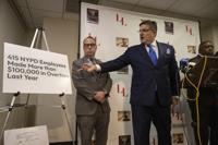 Attorney Lambros Lambrou, points at a board during a press conference as former NYPD Chief of Department Jeffrey Maddrey stands on the right, Friday, Dec. 27, 2024, in New York. (AP Photo/Yuki Iwamura)