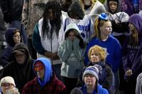 Fans and students decked out in school colors began arriving about two hours before kickoff to snag good seats. Blue and white balloons hung from a fence near the field, and a banner displayed the interlocked first letters of Lewiston and Auburn and the phrase, “We stand together.â€
