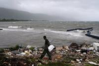 A man walks along the coastline during the passing of Hurricane Melissa in Kingston, Jamaica, Tuesday, Oct. 28, 2025. (AP Photo/Matias Delacroix)