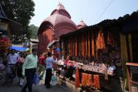 Hindu devotees walk past shops through an alley beside old temples on the occasion of Bengali New Year's day in which traders in West Bengal open their new account books for the year after offering prayers to Hindu deities Kali, Lakshmi and Ganesha to bring them prosperity, in Kolkata, India, Tuesday, April 15, 2025. (AP Photo/Bikas Das)