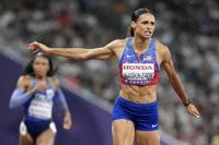 United States' Sydney McLaughlin-Levrone wins the gold medal in the women's 400 meters final at the World Athletics Championships in Tokyo, Thursday, Sept. 18, 2025. (AP Photo/Petr David Josek)