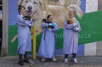From left; volunteers Melissa Speckman, Rachel Smith and Sarah Gibson hold puppies transported from shelters affected by flooding in Texas at PAWS Chicago Medical Center, Wednesday, July 16, 2025, in Chicago. (AP Photo/Erin Hooley)