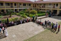 People wait to cast their votes during the general elections at Mpendaye polling station in Zanzibar, Tanzania, Wednesday, Oct. 29, 2025. (AP Photo/Brian Inganga)