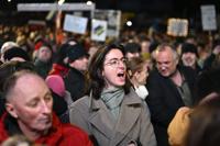 A protester shouts as thousands gather to oppose the policies of Slovakia's Prime Minister Robert Fico in Bratislava, Slovakia, Friday, Jan. 24, 2025. (AP Photo/Denes Erdos)