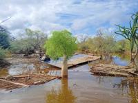 This undated handout photo provided by the Turtle Survival Alliance shows flooding responsible for the thousands of endangered tortoises that were washed away from the Lavavolo Tortoise Center in southern Madagascar during flooding due to Cyclone Dikeledi. (Lavavolo Tortoise Center via AP)