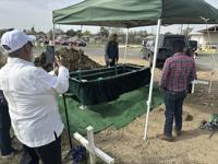 A church volunteer built the white pine paneled coffin. As the ceremony closed, a backhoe shoveled dirt into the grave and a placard was placed by a simple, white cross near two dozen similar crosses laying nearby in a corner lot of the cemetery near a maintenance shed.
